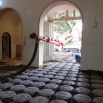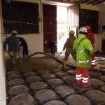 Una vez colocados los aislamientos antihumedad en la nave central de la iglesia y las preparaciones para hacer el encofrado de cemento, mediante la técnica del bombeo se ha encofrado toda la superficie con hormigón.
