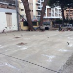 La misma actuación se ha hecho en la base de lo que será el nuevo aulario para la catequesis y para reuniones de todo tipo. Previa a esta actuación, ya que se trata de nueva construcción, se han instalado las conducciones de desagües de los sanitarios y aire acondicionado y el tubos de conducción de la electricidad, red de datos y telefonía.